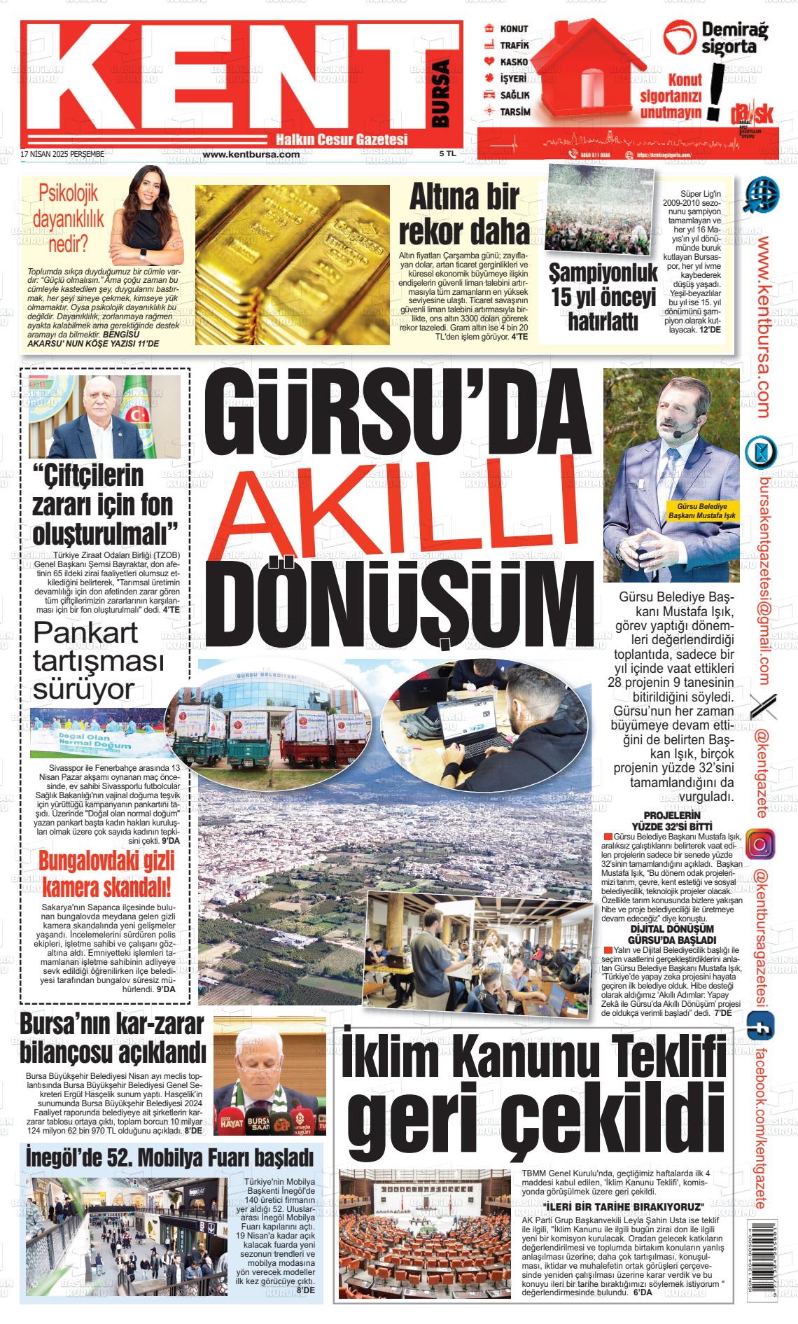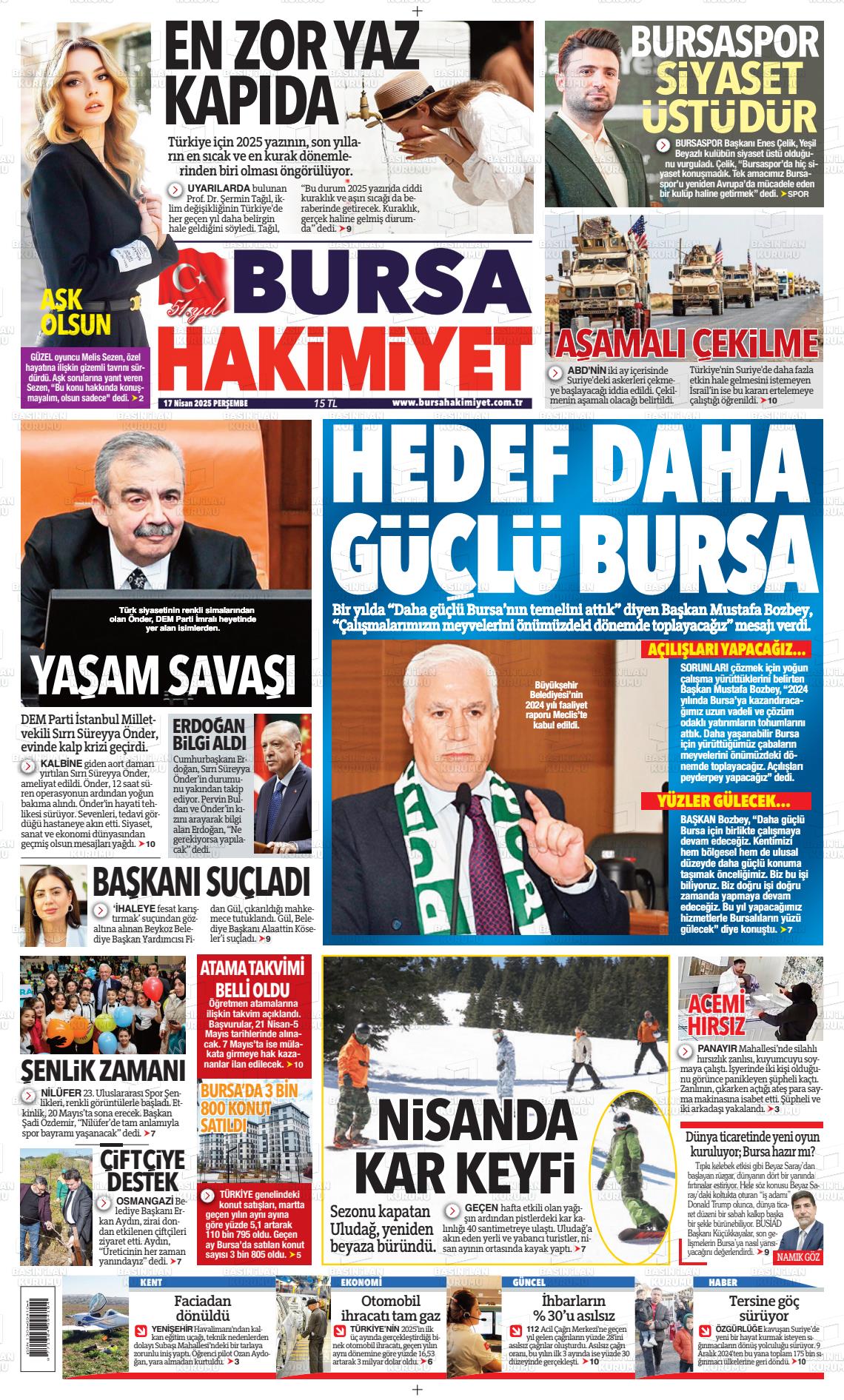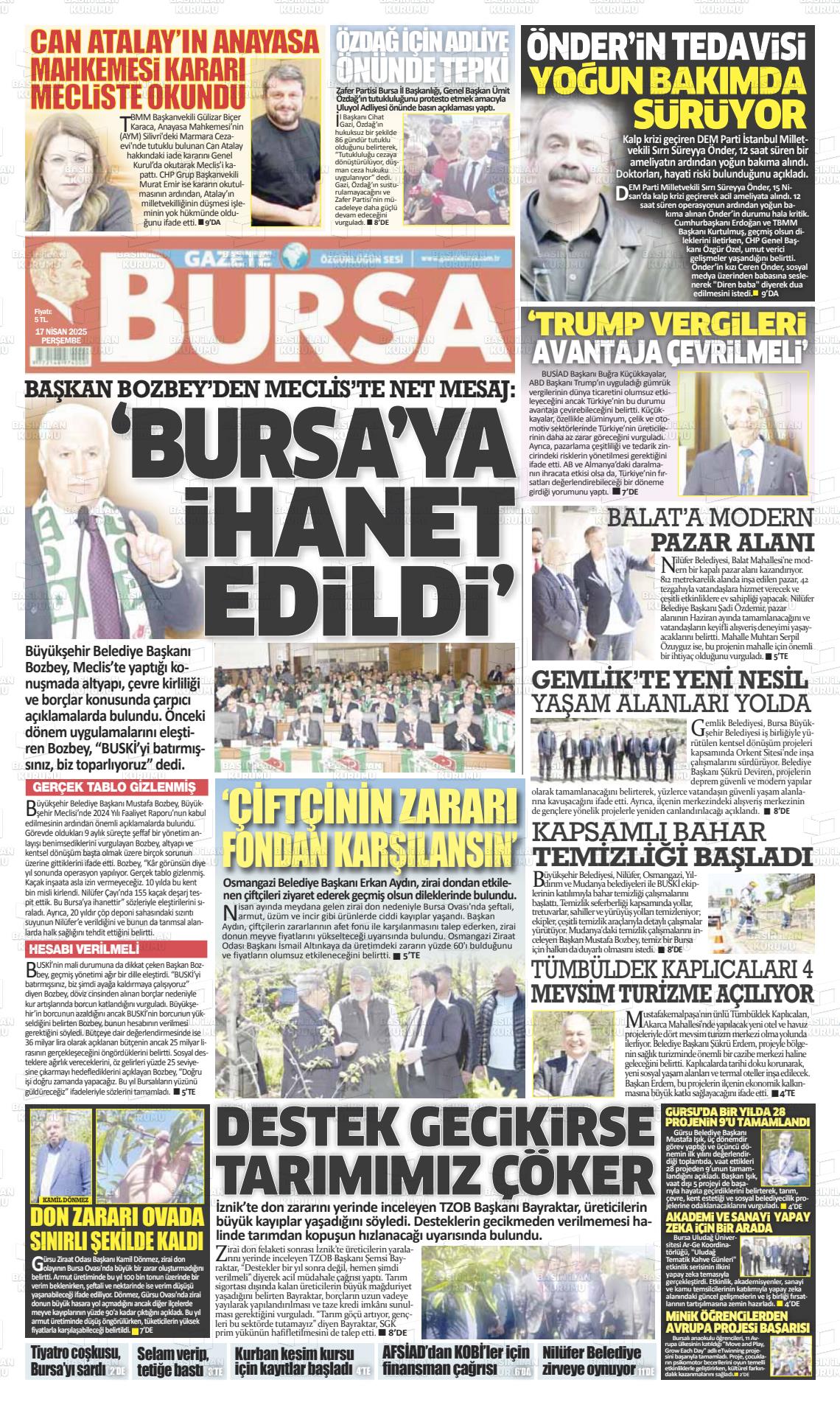 Bursa Yerel Gazeteleri 10 Şubat 2025, Pazartesi Günü Manşeti