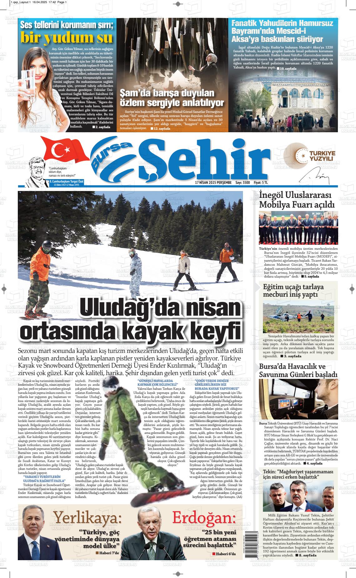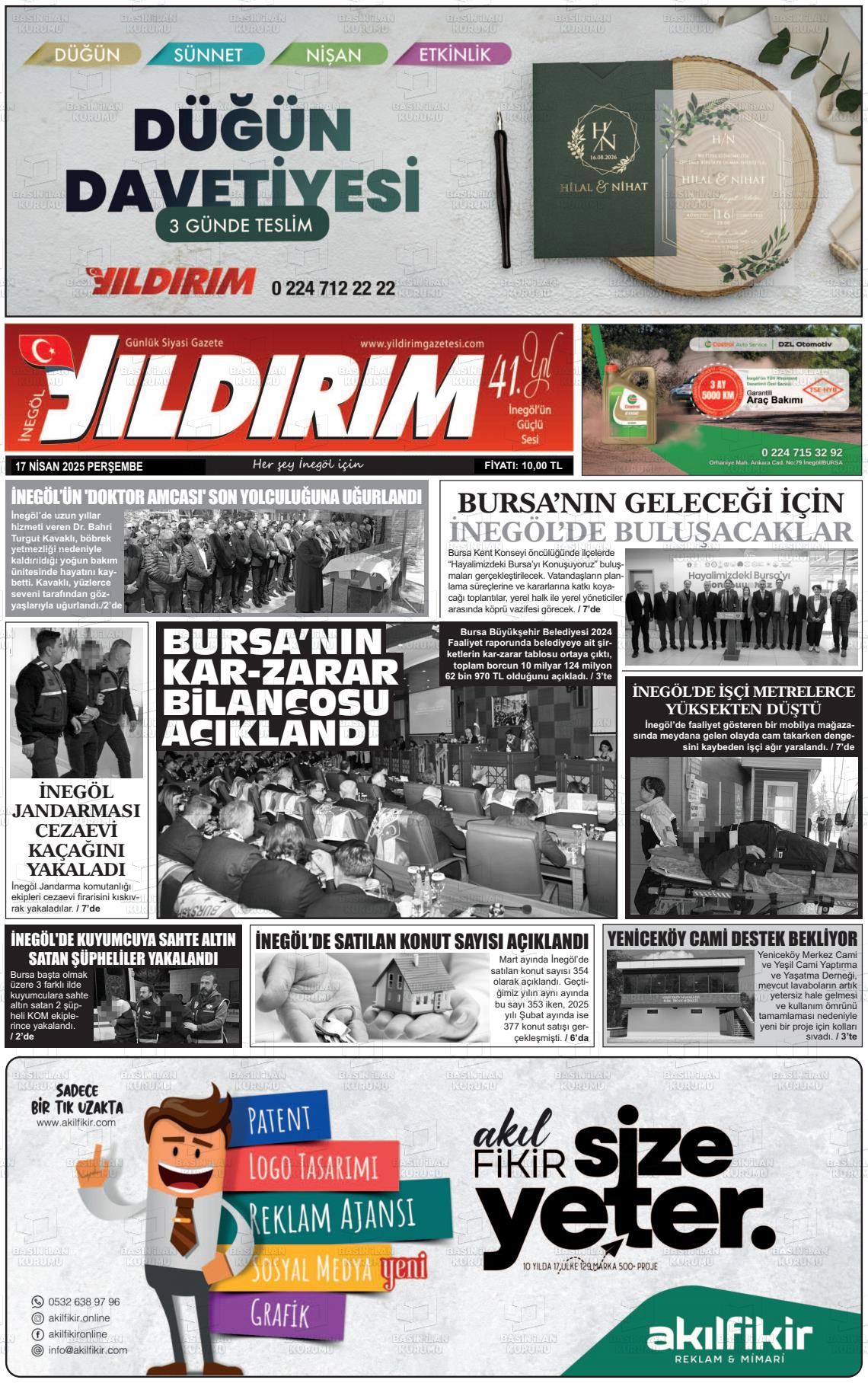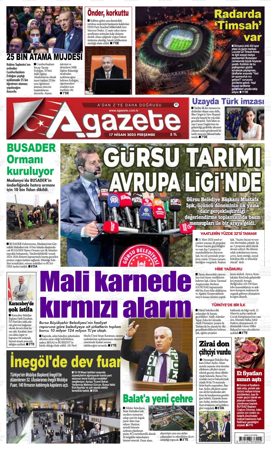 Bursa Yerel Gazeteleri 10 Şubat 2025, Pazartesi Günü Manşeti